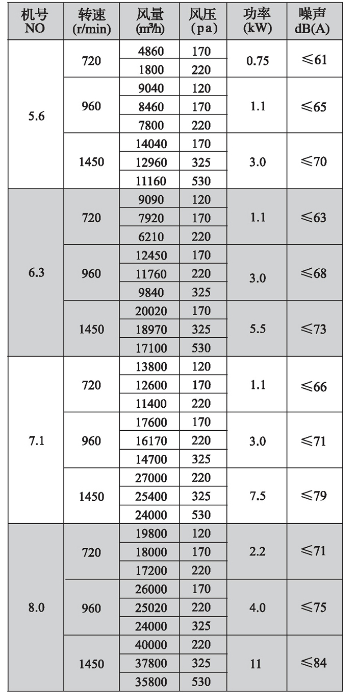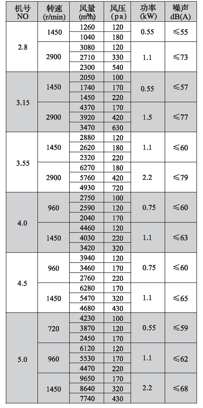 二、性能參數(shù)表