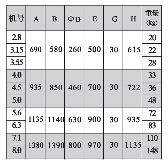 三、DWT-Ⅲ型風(fēng)機(jī)外形及基礎(chǔ)尺寸表(單位: mm)